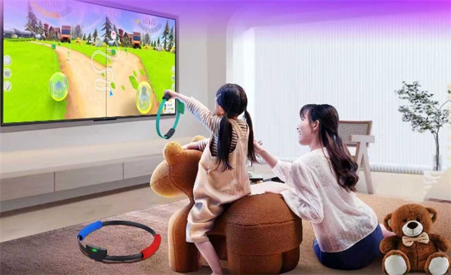 当然,健身频道还是宝贝玩得最多,因为妈妈给她配了个电信AI运动环,通过这个环跟着电视机能打地鼠、开赛车、开飞机,能玩的项目可多了。“这个好,孩子玩的同时需要不断挤压这个环,又锻炼了身体,一举两得。”妈妈见人就忍不住推荐。