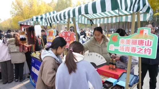 以“沉浸式体验+深度化交流”为核心,活动构建起多维立体的文旅展示场景,让唐山魅力可感可触。非遗文创展区内,剪纸的精巧、皮影的灵动、陶瓷的厚重相得益彰,指尖流转间尽展唐山非物质文化遗产的传承脉络;特色美食展示区香气氤氲,地道风味串联起味觉记忆,让“舌尖上的唐山”成为触手可及的鲜活体验。充满唐山元素的打卡互动区人气爆棚,师生们以镜头定格精彩,通过社交平台分享感悟,在趣味互动中让唐山文旅品牌影响力实现裂变式传播。