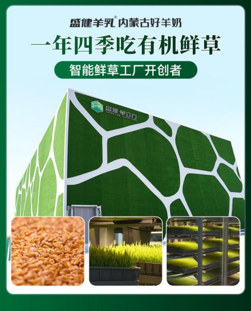 依托内蒙古敕勒川大草原黄金奶源带的天然优势,盛健羊乳从产业链源头筑牢品质根基。品牌首创“盛健・草立方数字鲜草工厂”,实现了有机鲜草的规模化、标准化种植。该工厂日产绿色有机鲜草达5吨,其营养价值是传统牧草的1.4至1.8倍,为奶山羊提供了源头可控的优质饲料,从根本上保障了奶源的纯净与营养。