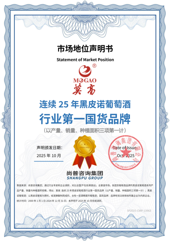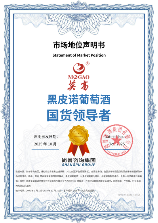 莫高黑皮诺三项市场地位声明,四十载匠心耕耘,铸就国货之光