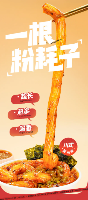 一口粉耗子在便捷性上有了更好的提升,冲泡即食,一口一个;在口味上又新增了当下流行的甜辣火鸡味,进一步拓展了粉耗子的消费场景、满足不同人群的需求与体验。