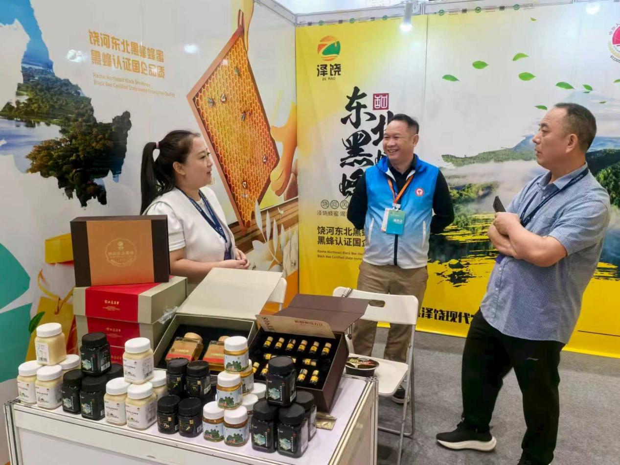 作为国家级生态示范区,饶河拥有世界三大黑土平原之一的三江平原,土壤有机质含量达 7%,得天独厚的生态环境孕育了众多优质物产。此次活动中,泽饶农业带来了国家地理标志产品 “饶河大米”、首批原产地地理标志保护产品东北黑蜂蜂蜜、蜂花粉等 20 余种蜂产品深加工系列,薇菜、刺嫩芽等远销国内外的林产品也同步亮相。