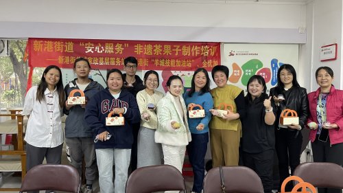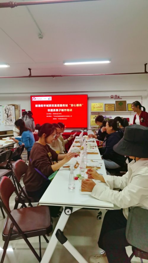 为传承非遗文化、丰富居民生活、提升实用技能,11月28日下午,由新港街羊城家政基层服务站、广东全优加家庭服务科技有限公司、新港街“羊城技能加油站”联合主办的非遗茶果子制作培训,在嘉仕社区新时代文明实践站举办。