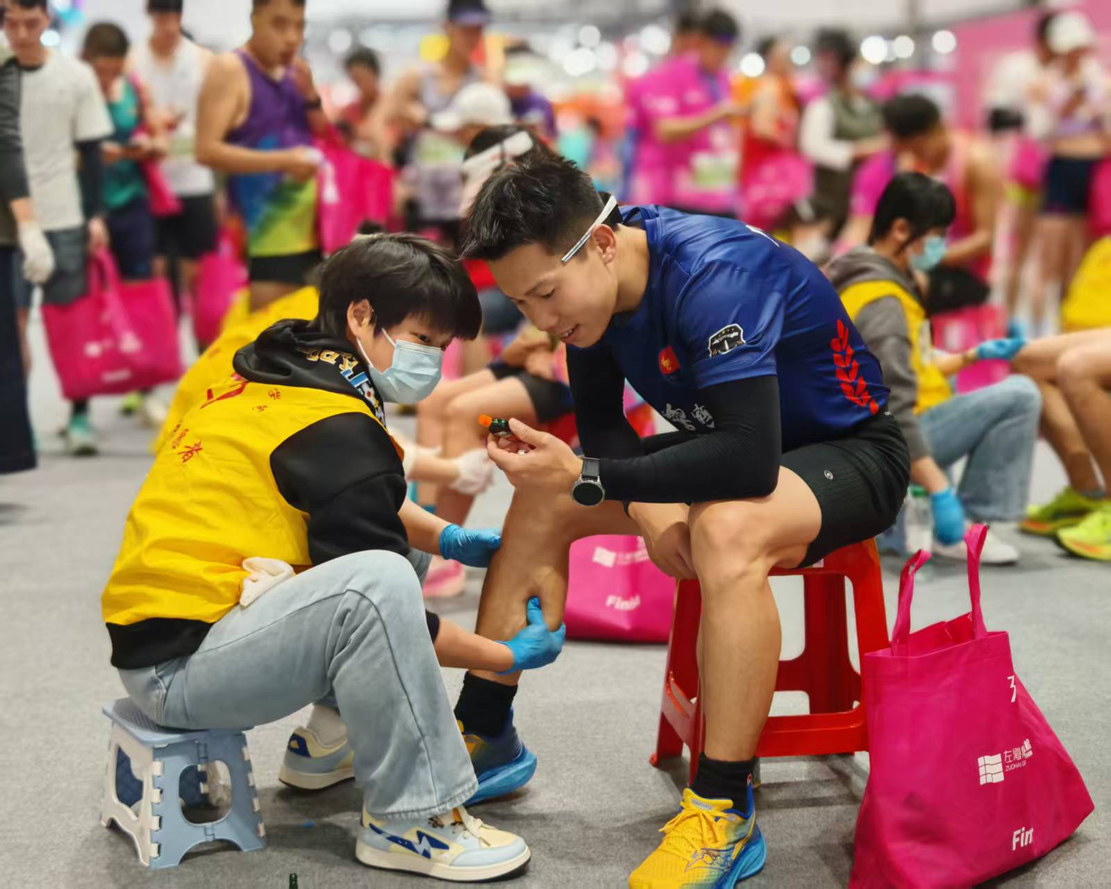 志愿者团队的专业服务与跑者的热情响应形成良性互动,排队体验拭擦服务的场景成为赛事一道独特风景线,不少跑者点赞:“金活依马打正红花油按摩太舒服了,是一道温暖守护!”