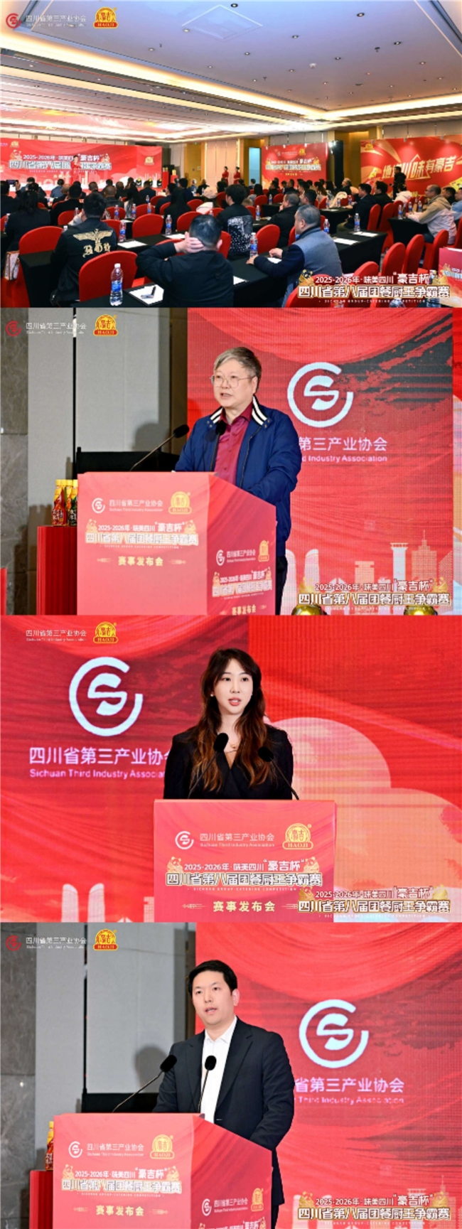 在四川省商务厅指导下,由四川省第三产业协会主办,四川旅游学院、四川省团餐专委会、四川省预制菜专委会共同承办,四川豪吉食品有限公司独家总冠名的2025-2026味美四川·“豪吉杯”四川省第八届团餐厨王争霸赛,于12月18日在成都正式启动赛事发布会。