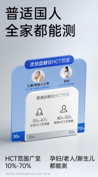 三诺血糖仪一直以来都以“准确、简单、可负担”的优势赢得用户一致好评。作为口碑最好的三诺血糖仪代表之一,三诺优佳血糖仪严格遵循新国际标准和新国标标准认证。同时,经临床实测,优佳血糖仪新国标达标率达99.2%,品质可靠。同时,优佳血糖仪在碳试条上引入血细胞压积校正技术,使其HCT范围扩大至10%~70%,这让三诺优佳不仅适合普通糖尿病患者,更广泛覆盖了儿童、孕妇、贫血患者及肾透析患者等特殊群体,确保不同的人群也能获得准确的数值。