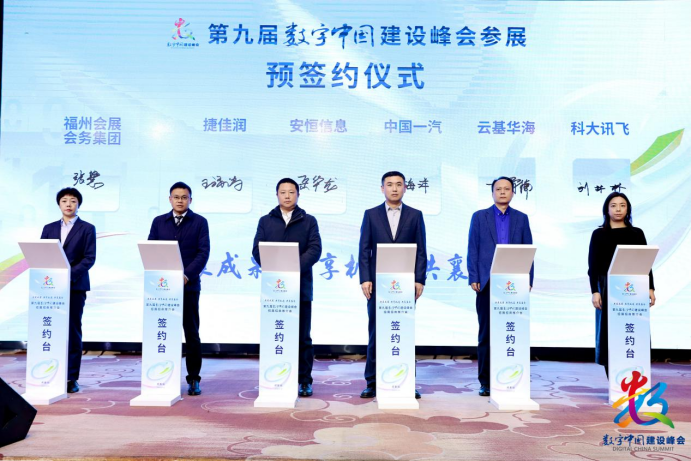 峰会发出盛情邀请,当地企业积极响应,报名参与热情高涨。现场,中国一汽、安恒信息、云基华海等10家优秀单位代表,参与第九届数字中国建设峰会现场体验区参展预签约仪式。