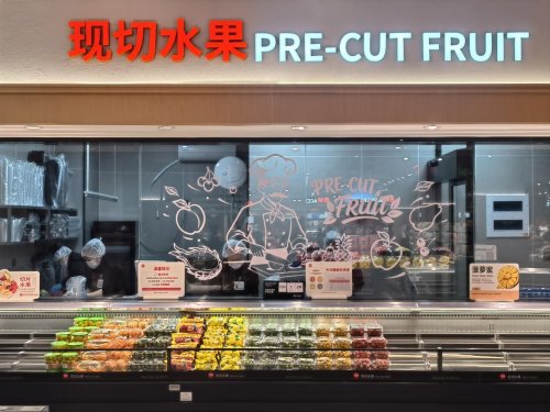 各品类深度服务全面上线:肉禽柜台支持免费切配加工;海鲜柜台提供清洗、处理服务;水果区提供专业分切与食用建议。年货节期间,还将推出免费礼品包装、礼盒代寄等贴心服务,直击节日送礼的痛点。食品安全管控也严格执行以“新鲜”为核心的标准,果切推行“468原则”(4小时8折、6小时6折、8小时下架),部分叶菜、肉禽、水产严格执行“日清”,不售隔夜商品。
