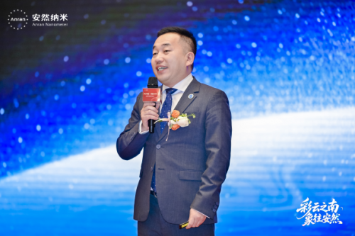 在热烈昂扬的氛围中,安然集团副董事长兼安然纳米营销及研发总裁刘金坤先生登台致辞。他首先向所有精英伙伴们致以最热烈的祝贺,并表示这场云南之约,是大家用汗水与拼搏赢得的荣耀勋章。