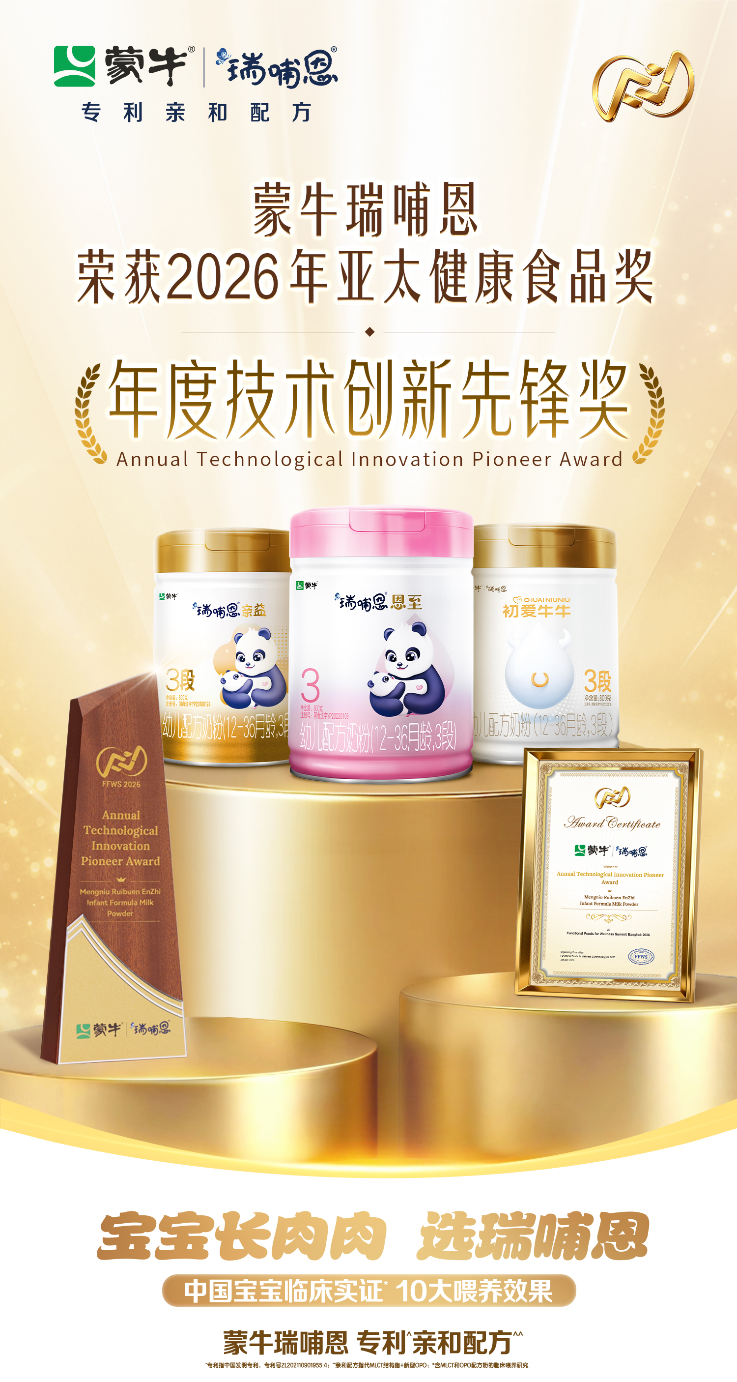 在本届峰会上,蒙牛瑞哺恩旗下恩至、亲益、初爱牛牛三款婴幼儿配方奶粉,集体荣获“年度技术创新先锋奖”。这份国际认可,印证了蒙牛在婴幼儿配方奶粉领域已建立起基于长期基础科研的领先优势。
