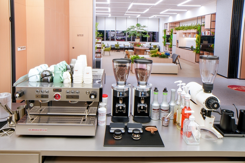 清晨,咖啡区的La Marzocco咖啡机开始运转,奶泡在杯中轻轻旋转,咖啡师的手腕一转,一朵精致的拉花便绽放在咖啡表面。研发工程师们端着咖啡走进办公区,灵感也随之被点亮。午后,这里又成了团队讨论的小天地,许多技术难题就在香气氤氲中悄悄被解开。