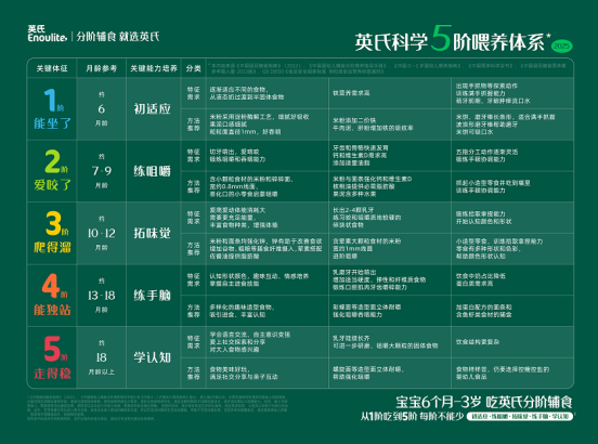 宝宝的成长有“时令”,喂养更需顺时而为。英氏开创性地打造科学5阶喂养体系,从6个月到3岁,精准适配宝宝不同阶段的成长需求,让“口福”成为看得见的科学成长。