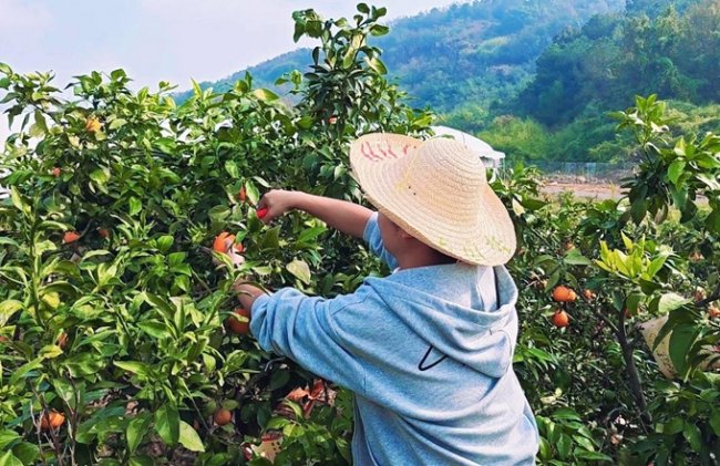 五丰村果农正在果园采摘橘子。贾施东/摄