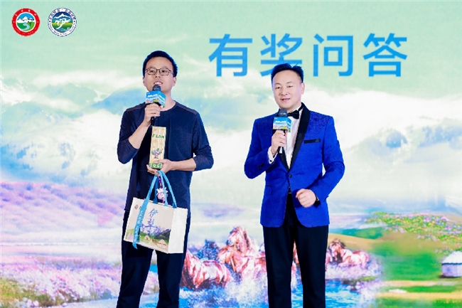 在热情奔放的歌曲《来吧新疆》之后,现场进入有奖问答环节。围绕伊犁文旅知识设置的互动问题吸引了众多嘉宾踊跃参与,赢取薰衣草伴手礼等精美奖品,现场气氛热烈。最后,舞蹈《幸福欢歌》以欢快的节奏为整场活动画上圆满句号。