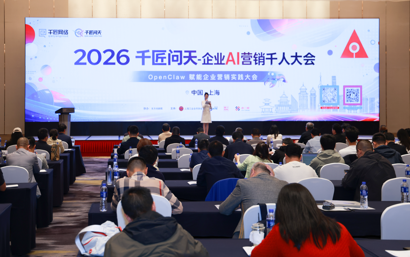 2026年4月10日,由千匠网络主办的“2026千匠问天·企业AI营销千人大会”暨OpenClaw赋能企业营销实践大会在上海举行。来自消费、制造、零售及产业互联网等多个领域的上千位企业创始人、营销负责人及AI产业从业者汇聚一堂。相较于以往围绕技术能力的讨论,本次大会更聚焦一个更具现实意义的命题——当AI Agent开始直接参与业务执行,企业增长的底层逻辑正在发生怎样的改变。