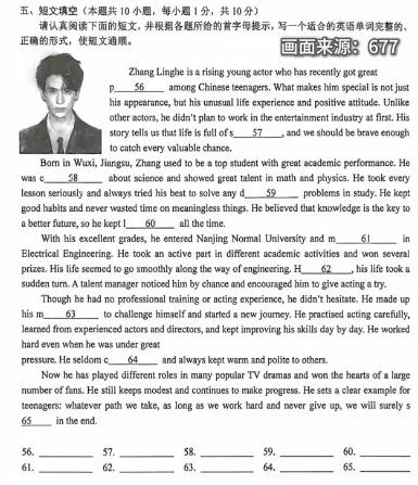 张凌赫确实登上了江苏的英语试卷(2026 年 4 月最新),素材是关于他的真实励志经历,属于 “时文阅读” 类考题。