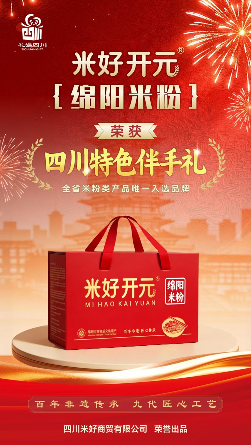 “米好开元”绵阳米粉的制作技艺源于九代相传的米氏米粉制作工艺,历史底蕴深厚,风味醇正。2023年,该品牌完成战略升级,正式更名为“米好开元”。自此,这一承载九代非遗技艺的传统美食,以全新的品牌形象从地方小吃迈向省级伴手礼名片。截至目前,“米好开元”已累计获得多项省市级及国家级权威荣誉,构建起非遗传承、品质认证、市场口碑三位一体的品牌资产体系。