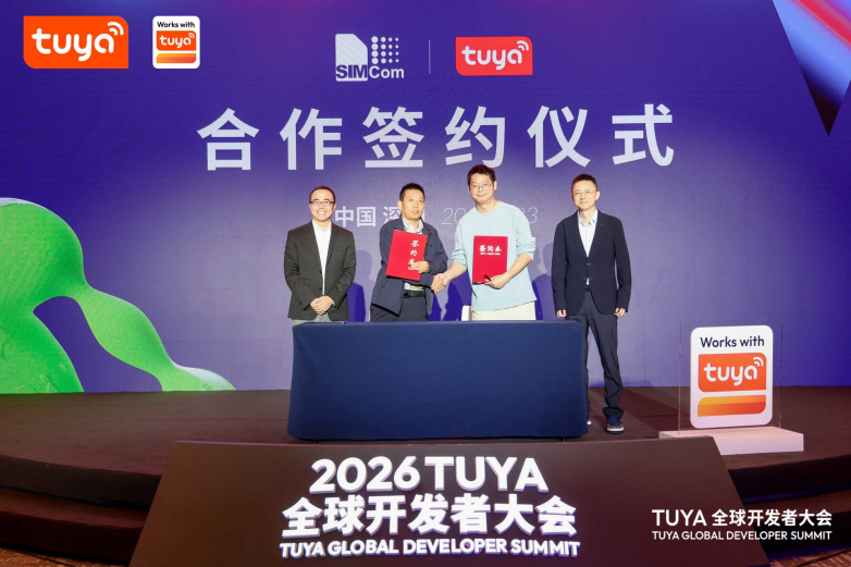 2026年4月23日,AI云平台服务提供商涂鸦智能(纽交所代码:TUYA;港交所代码:2391)与无线通信模组及解决方案领域的先行者芯讯通(SIMCom)联合官宣,双方正式达成深度合作。依托各自核心优势,以“连接+AI+云”协同模式打破软硬件技术壁垒,联合打造AI+IoT一站式解决方案,聚焦全球商用AI+IoT核心场景,助力客户降本增效,携手推动全球AI+IoT商用领域创新突破,解锁万物智联全新可能。