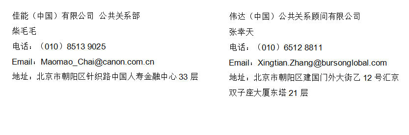 如需更多资料,欢迎浏览佳能(中国)有限公司网站www.canon.com.cn,或联系: