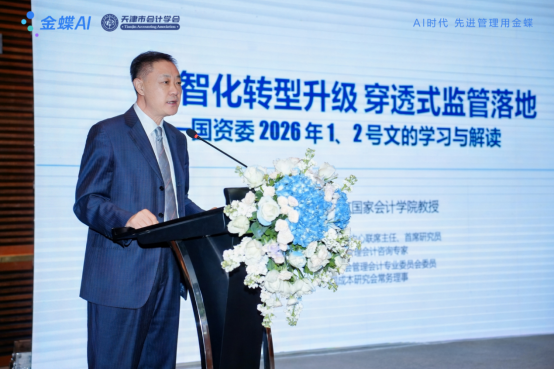 4月28日,由天津市金蝶软件有限公司联合天津市会计学会共同主办的“AI赋能 穿透监管——财务数智化转型与国资穿透式监管专题研讨会”在天津成功举办。来自天津市国资委、财政局、北京国家会计学院、南开大学、天津财经大学及天津本地央国企的80余位领导、专家与企业代表齐聚一堂,围绕国务院国资委2026年1号文、2号文(以下简称“双文”)落地要求,深入探讨人工智能赋能下的穿透式监管体系建设与财务数智化转型路径。全市40余家重点国资企业的代表参会交流。