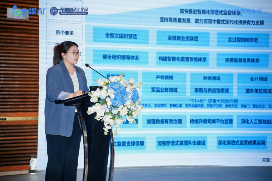 金蝶中国穿透式监管方案专家王炜围绕“AI赋能下穿透式监管——应用焦点与场景实践”主题,阐述了人工智能技术与穿透式监管体系的深度融合路径。她介绍,金蝶已围绕“四大体系、五大智能应用、十大重点领域”构建完善产品蓝图,实现了从数据自动采集、模型自动分析,到风险自动预警、核查自动派单、整改自动跟踪的智能化管控流程。通过融合知识图谱、机器学习、大模型与智能体等先进技术,金蝶已在采购供应链、合同管理、虚假贸易识别、过度负债监控等场景实现业务穿透与风险智能识别,结合金蝶在央企国企客户的典型案例,印证了AI驱动穿透式监管在提升风控效率、保障国有资产安全方面的实战价值。